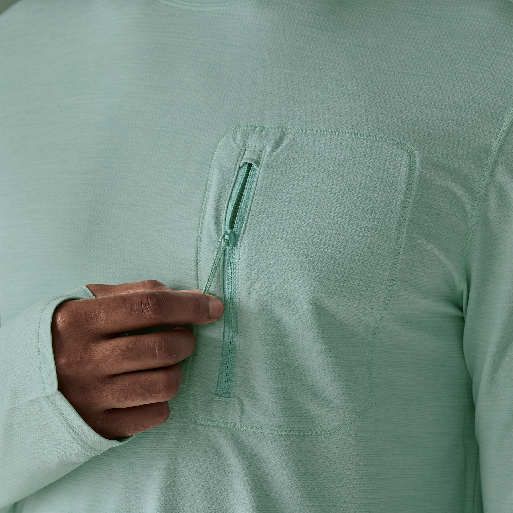 Thumb holes at the cuffs provide added sun protection for the backs of the hands