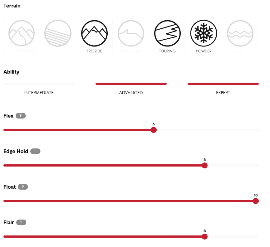 Rocker étendu à la spatule et au talon Nous utilisons un rocker étendu, une forme de cambre inversé à la spatule et au talon, qui, avec la largeur de la taille, est l'élément le plus important pour offrir de la portance dans la neige fraîche. Le rocker étendu facilite également le pivotement et l'initiation du virage, ce qui signifie que vous avez moins de chances de prendre un bord.