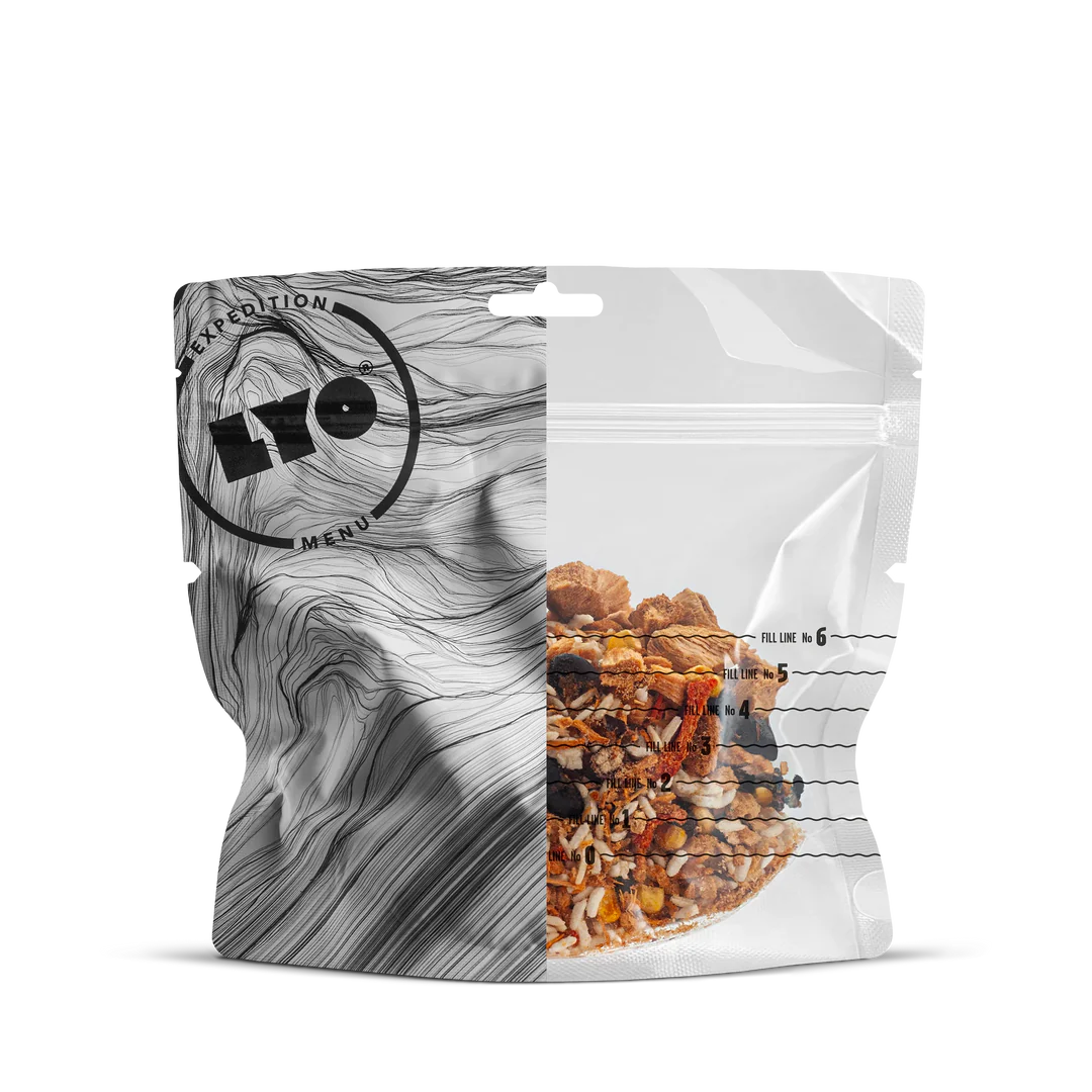 Long shelf life: LYO EXPEDITION meals can be stored for a long time. Since the water content is being removed during the freeze-drying process, microorganisms and enzymes action are inhibited. Each pouch is hermetically sealed and contains an oxygen absorber.