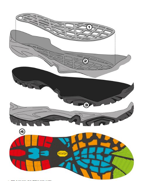 • 3. OUTSOLE VIBRAM®exclusive design by SCARPA XS Trek rubber compound for adaptibility in every type of terrain